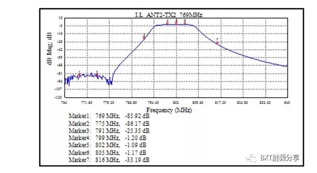 通过自动化测试软件的指令,可以自动切换不同的测试通路,依次完成双工器1和双工器2的各项指标的测试,而不需要手动更换电缆和测试端口。